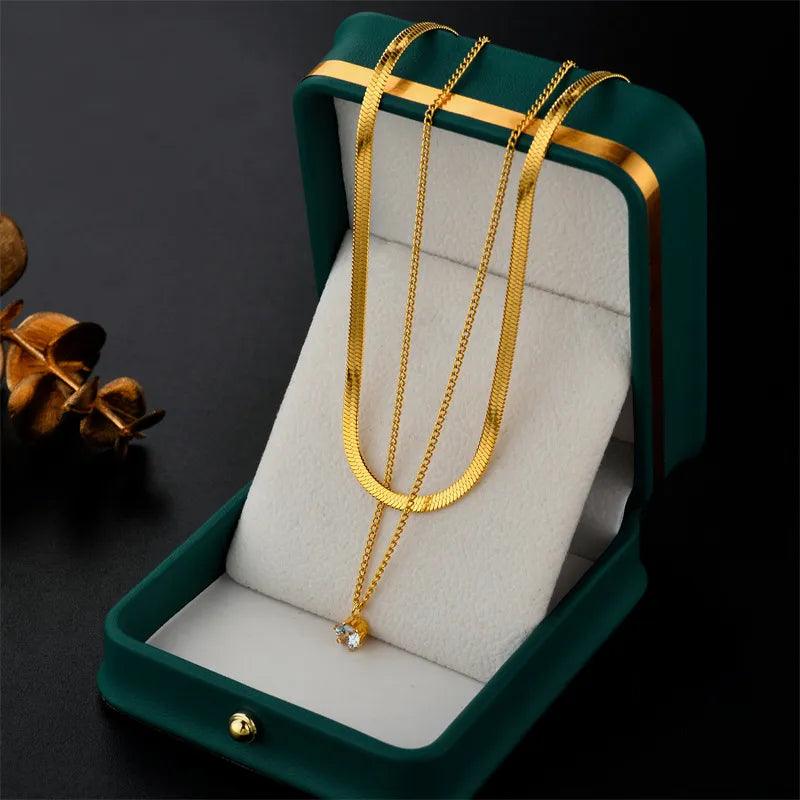 O Colar Duplo com Zircônia é uma joia deslumbrante que combina a elegância da dupla corrente com o brilho cintilante das zircônias, criando uma peça que é ao mesmo tempo sofisticada e encantadora.