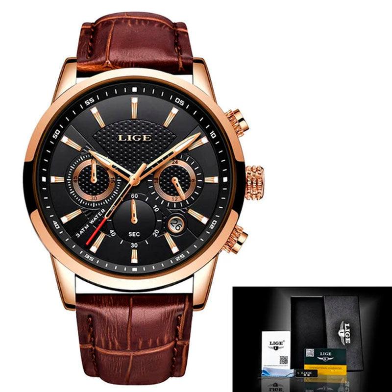 Relógio Masculino Luxo Lige Couro Rond